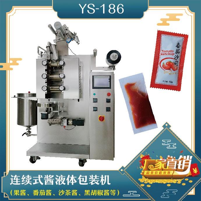 YS-186 連續(xù)式醬體包裝機特 點 1、適用于食品、化妝類粉劑、液體、醬體等物品的計量包裝。2、可自動完成制袋、計量、下料、封合、分切、計數(shù),可根據(jù)客戶要求配置打印批號等功能。3、觸摸屏操作,PLC控制,伺服電機控制袋長,性能穩(wěn)定、調整方便、檢測準確。智能式溫控儀,PID調節(jié),保證將溫度的誤差控制在1℃內。4、包裝材…