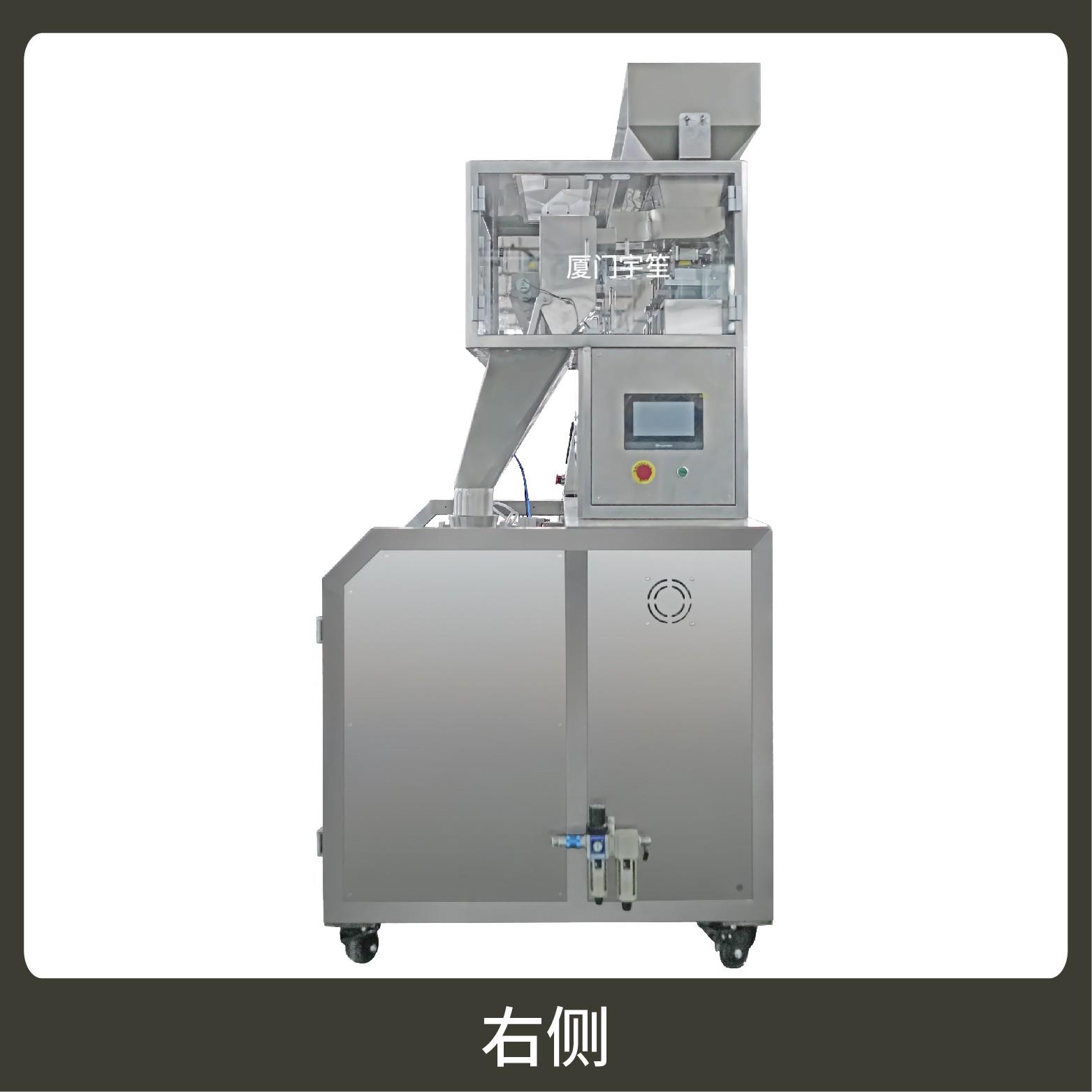 2、用于自封袋、站立袋、拉鏈袋,可抽真空、充氮?dú)?。包裝流程全自動(dòng),無(wú)需人工操作??筛鶕?jù)充填物料的性質(zhì)選配不同的下料結(jié)構(gòu),且可根據(jù)客戶(hù)要求配置打印批號(hào)等功能。