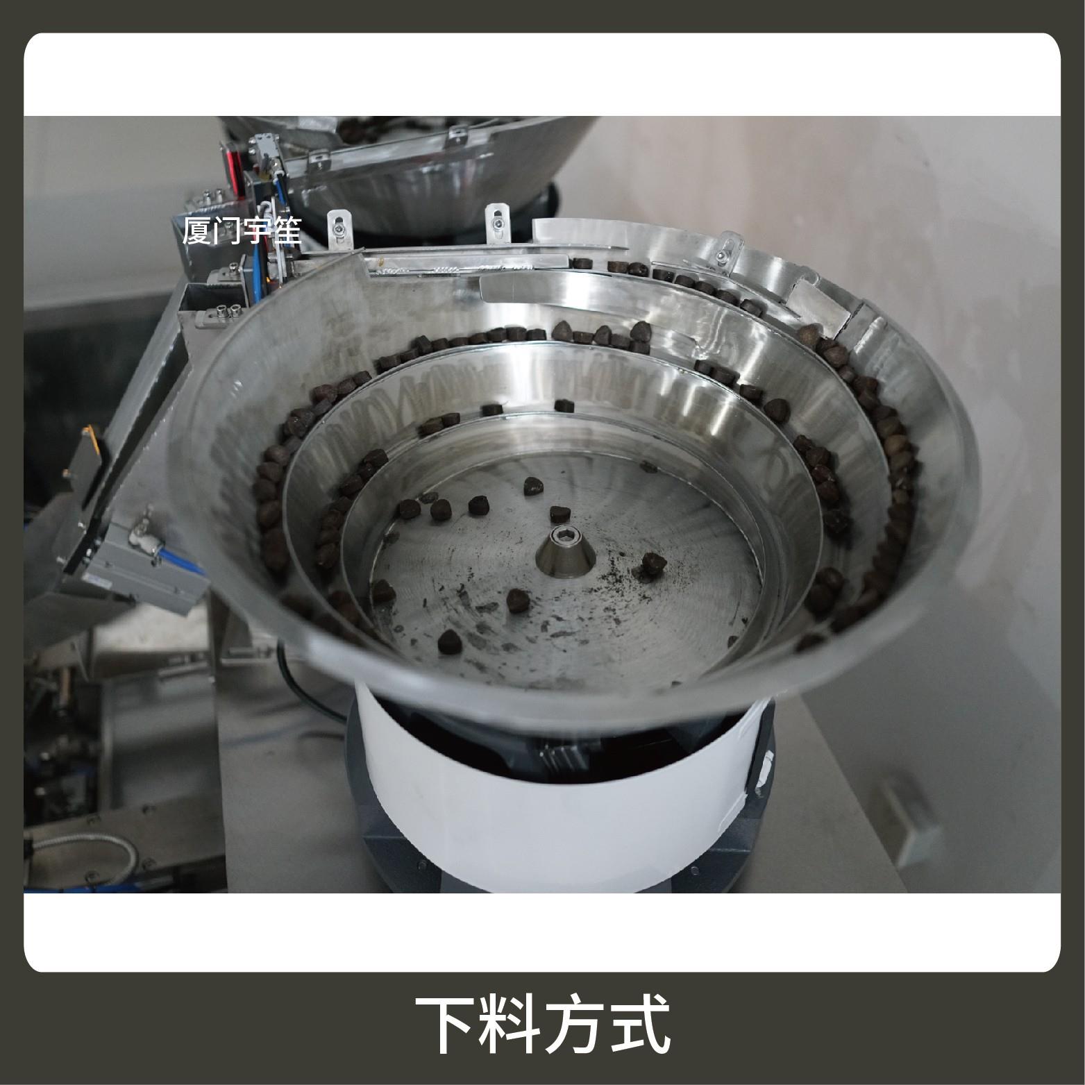 2、包裝流程全自動、無需人工操作??筛鶕?jù)充填物料的性質(zhì)選配不同的下料結(jié)構(gòu)。