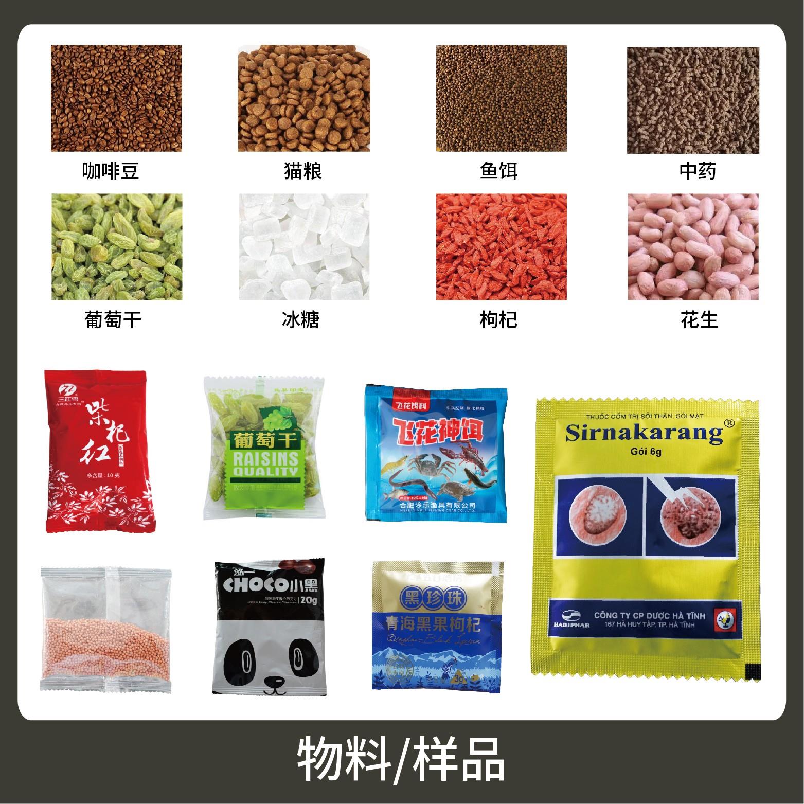 適用于食品、醫(yī)藥、化工、化妝品行業(yè)中顆粒物品的計(jì)量包裝,如:種子、中藥顆粒、調(diào)味料。